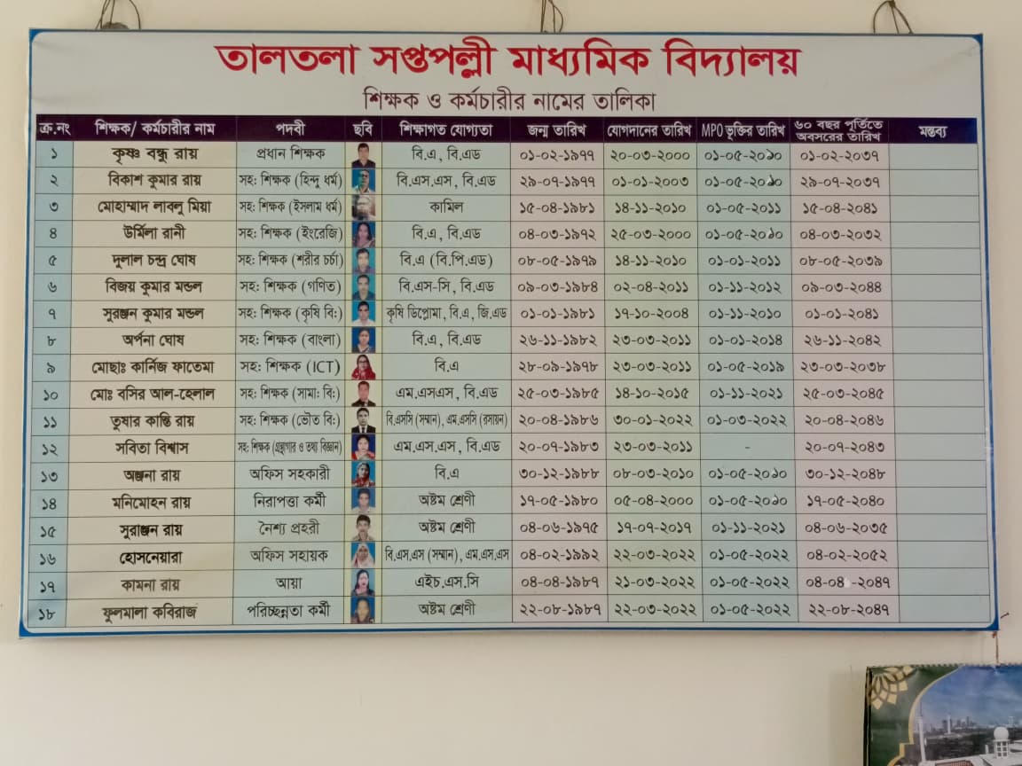 শিক্ষকগণের তালিকা